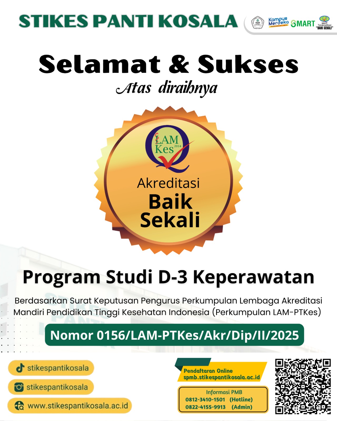 SELAMAT & SUKSES ATAS DIRAIHNYA AKREDITASI “BAIK SEKALI” UNTUK PROGRAM STUDI DIPLOMA TIGA KEPERAWATAN